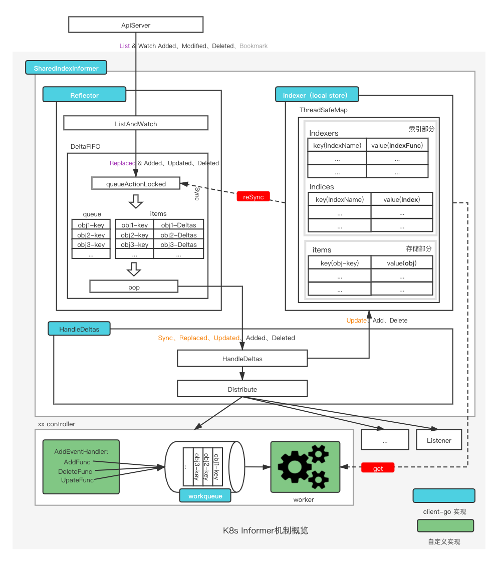 其余的部分都是由client-go完成,主要关注SharedIndexInformer。