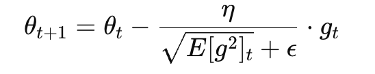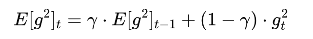 它用指数加权移动平均(EMA)来更新梯度的平方,公式如下,即 $$E[g^2]_t