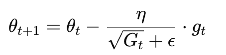 为此AdaGrad提出依据历史的梯度信息来调整学习率。其参数更新的计算公式如下: