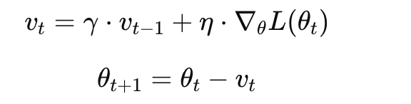 Momentum(动量法) 是在 SGD 基础上的进行了优化,它引入了动量机制,它用过去的“梯度方向”给当前的更新加“惯性”!像小球在山谷中滑行,会积蓄动能,不会被小坑困住。