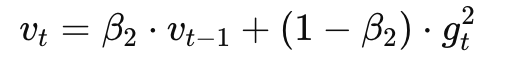 - 二阶矩(梯度平方的滑动平均):