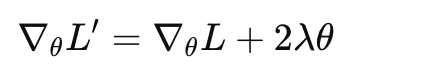 对于SGD,在加入了L2正则项后,损失函数再对θ求导可以得到: