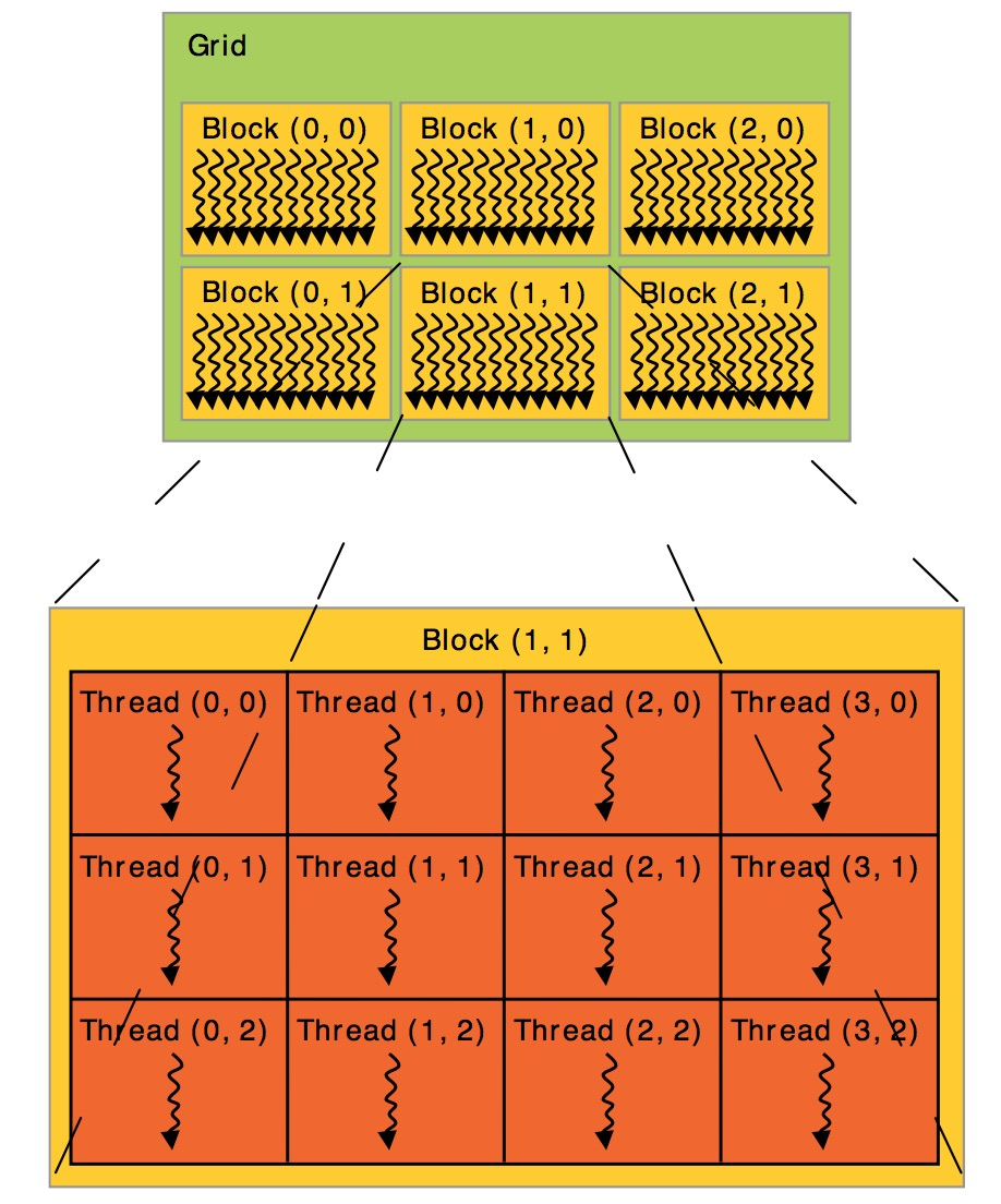 总的来说,CUDA 可以分为 Grid,Block 和 Thread 三个层次结构: