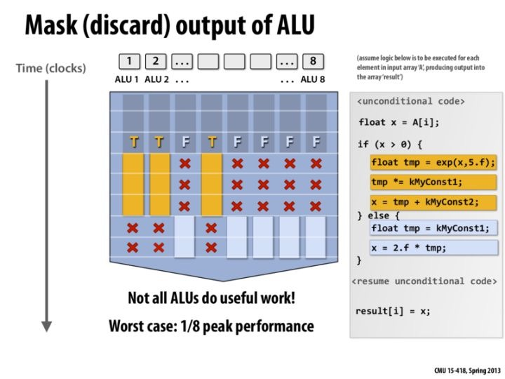 极端情况下,每一个Core的指令流都不一样,那么甚至还可能导致一个 Warp 中仅有一个 Core 在工作,效率降低为 1/32.