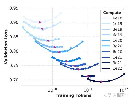 - 首先是得到不同计算量下最优表现的Tokens数: