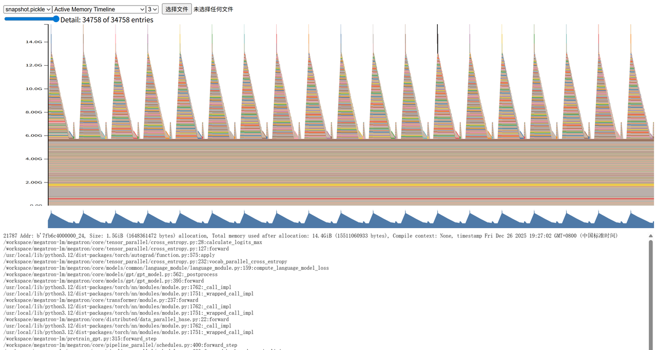 if iteration % args.log_interval == 0: if args.record_memory_history and is_last_rank(): snapshot = torch.cuda.memory._snapshot() from pickle import dump