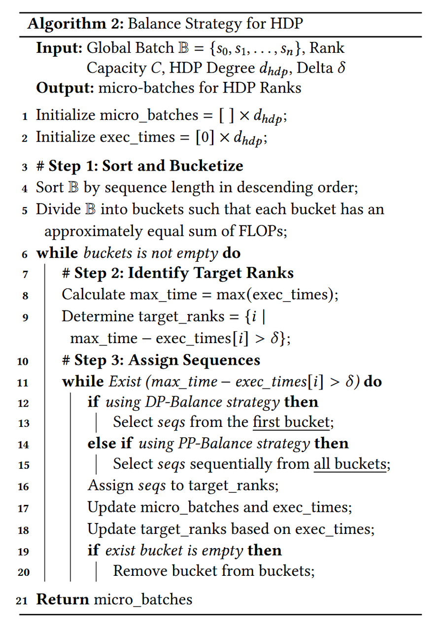 提出了一种混合数据并行方案(HDP)来统一DP和CP,利用[1,DP*CP]范围内的worker灵活处理可变长序列