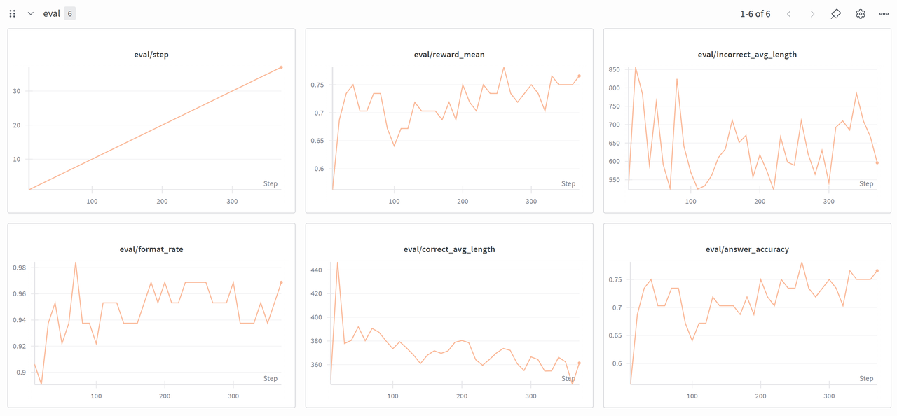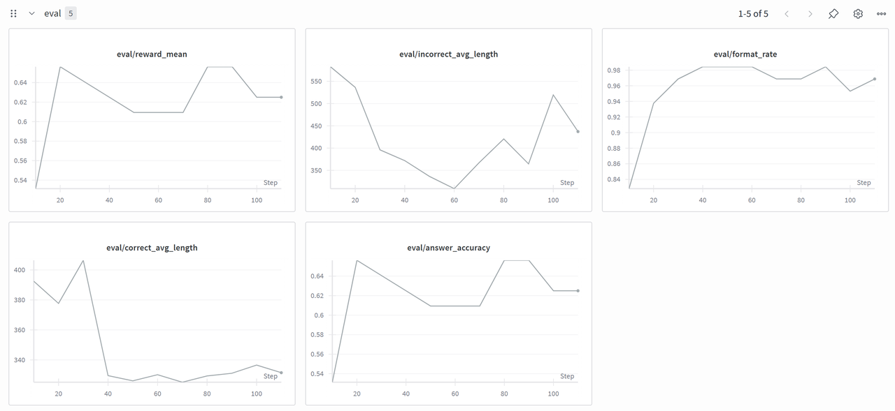 运行结果如下,可以看到其最终的格式正确率可以提升到95%往上,其格式+答案正确率可以提升到75%以上,还是有很大提升的。