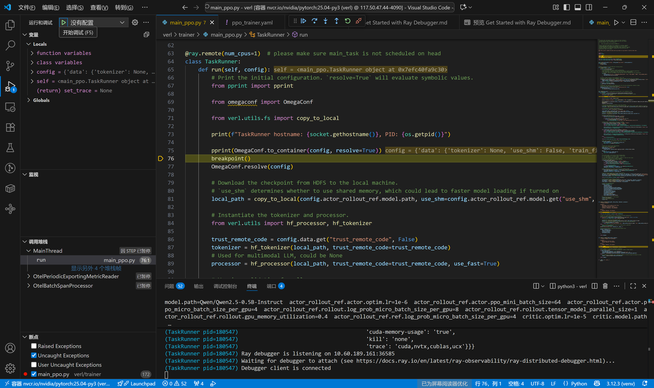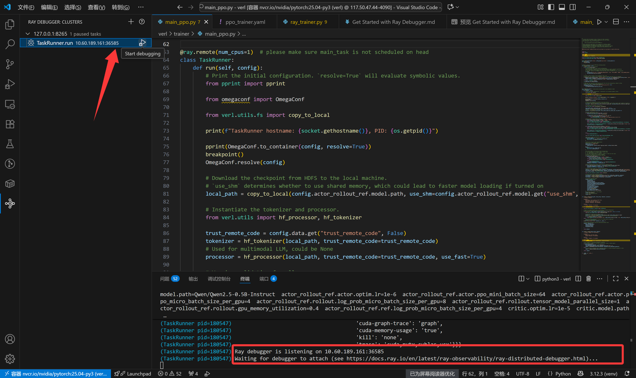 首先需要在vscode中下载Ray Distributed Debugger