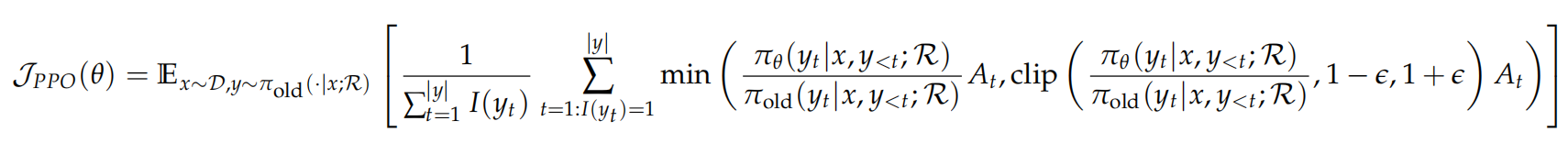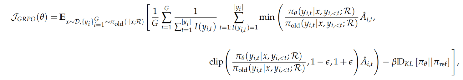 论文把目标写成:在给定输入 $x$ 和搜索引擎 $R$ 的条件下,最大化模型生成轨迹的期望奖励,同时加入与参考模型之间的 KL 正则,都是一些经典做法。